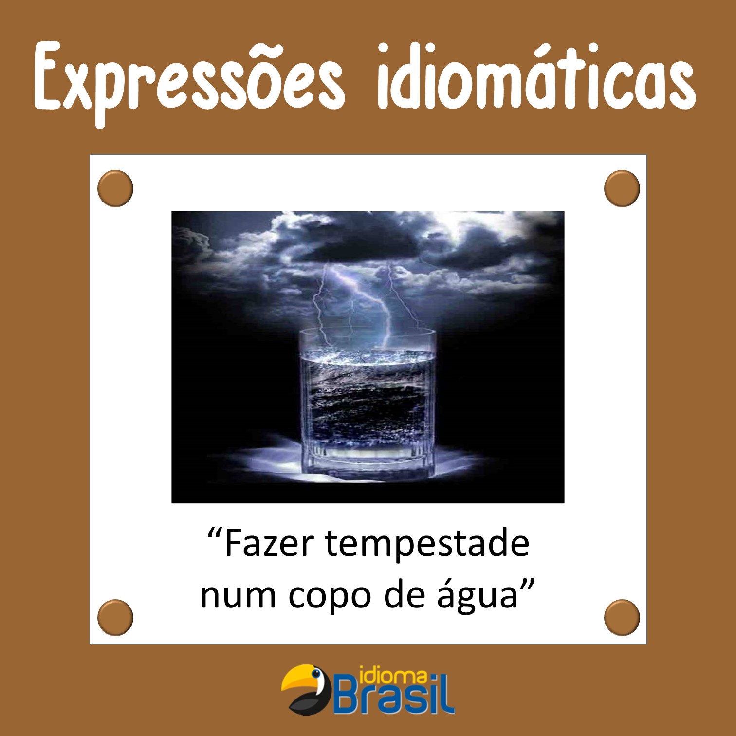 A expressão idiomática “Fazer tempestade em um copo de água” significa “ter uma preocupação/reação exagerada a um problema”.